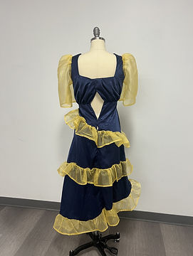 This dress is a tribute to the swirling brilliance of Starry Night, a wearable canvas where art meets fashion. Inspired by Van Gogh’s iconic masterpiece, the design captures the dreamlike movement of starlit skies, blending deep midnight blues with flashes of gold.
